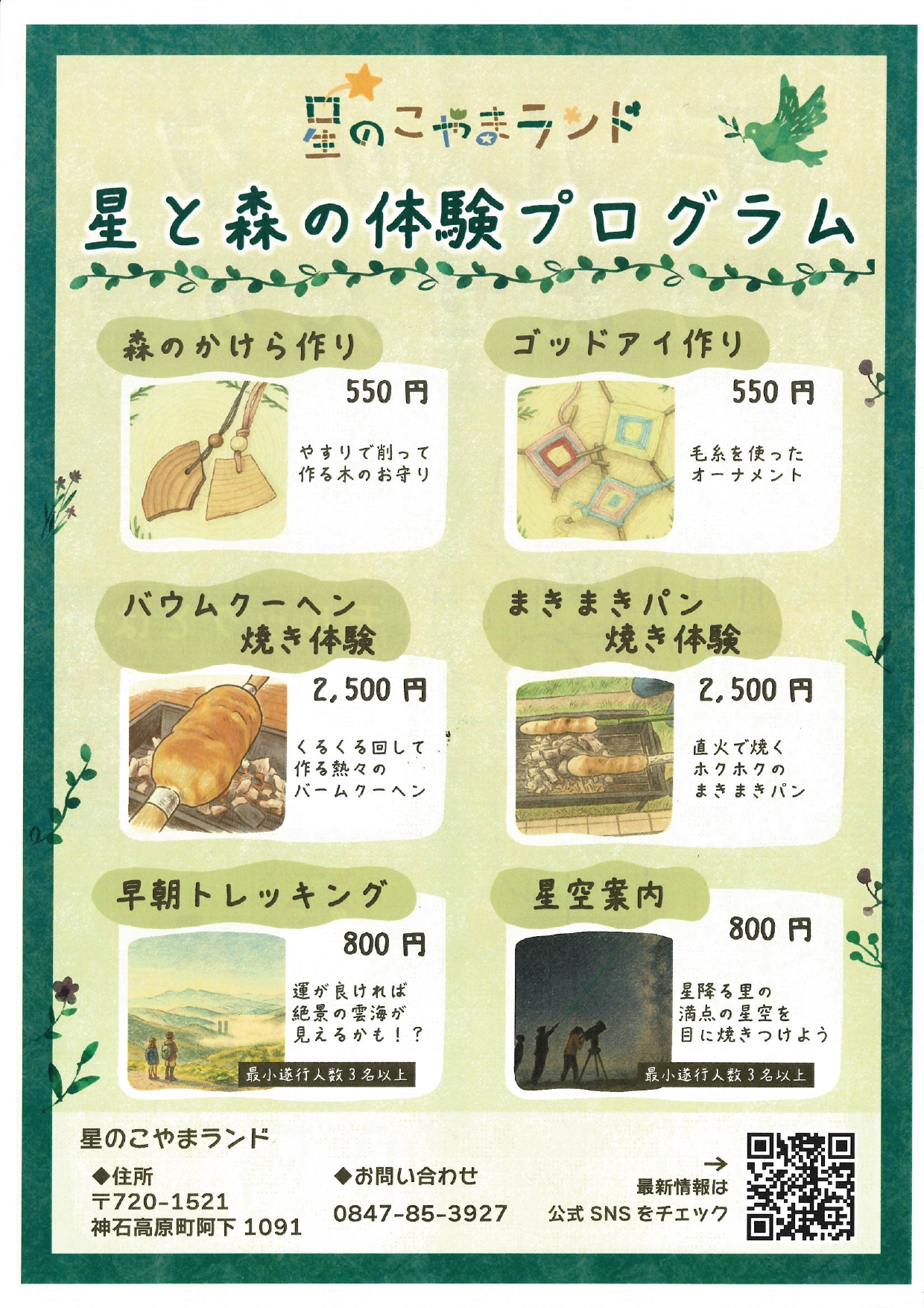 お問合せは、星のこやまランド(神石高原町阿下1091)℡:0847-85-3927