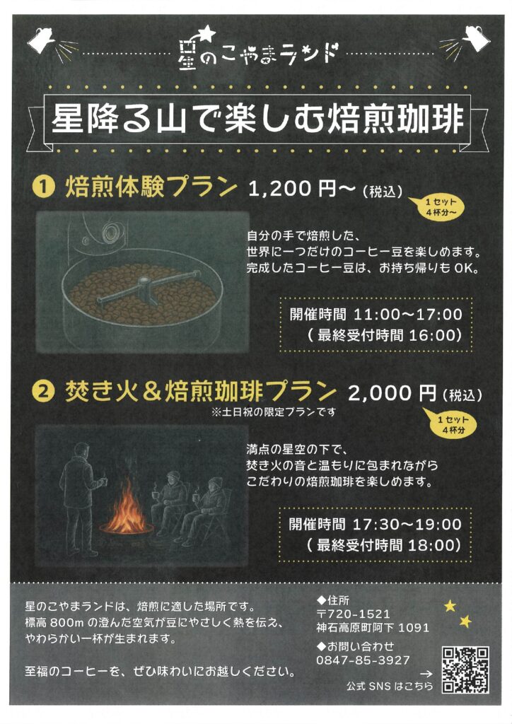 お問合せは、星のこやまランド(神石高原町阿下1091)℡:0847-85-3927
